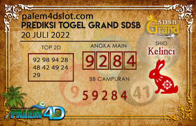 Seperti biasa untuk peracik prediksi togel jitu biasanya akan mncoba untuk menyediakan berbagai macam angka dan nomor agar dapat menjadi saran untuk para pembaca yang membutuhkan.Bagi teman-teman yang perlu cukup puas dengan prediksi kami dapat di nformasikan kepada teman-teman atau orang lain yang memang butuh prediksi gsb atau grand sdsb ini.Prediksi ini dapat diperoleh baik di bandar darat atau di Bandar Togel Online seperti Palem4D . Jika Anda memang bermain di togel online dapat langsung bergabung bersama situs yang sudah kami terima.